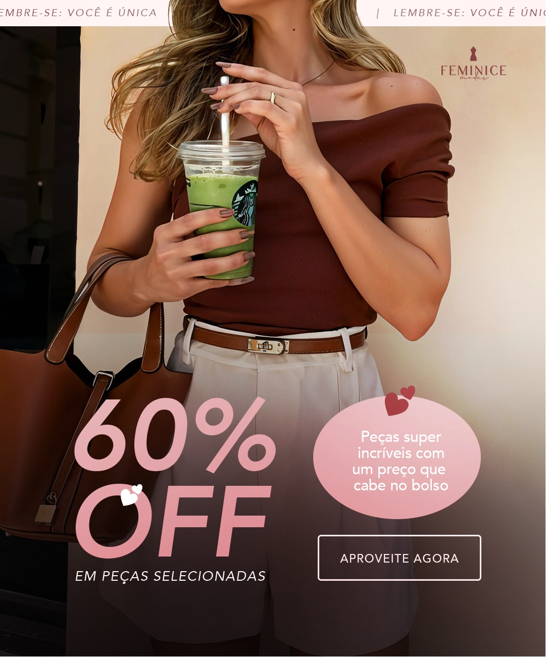 Trabalhamos com peças modernas, versáteis e de qualidade, alinhadas às principais tendências da moda feminina. Cada coleção é pensada para valorizar a beleza única de cada cliente, unindo conforto, elegância e estilo para todos os momentos.